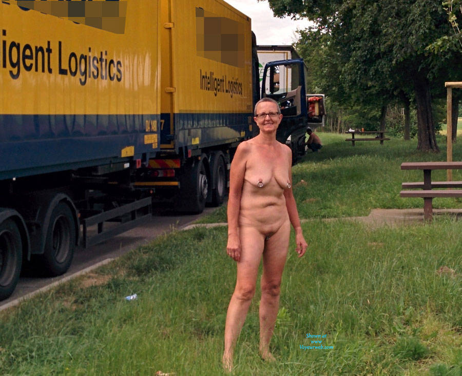 Nude at German highway parking lot