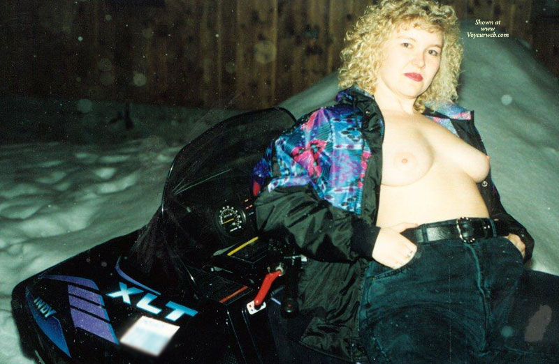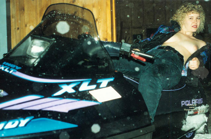This country girl knows how to play in the snow. She loves to ride fast on a big machine.