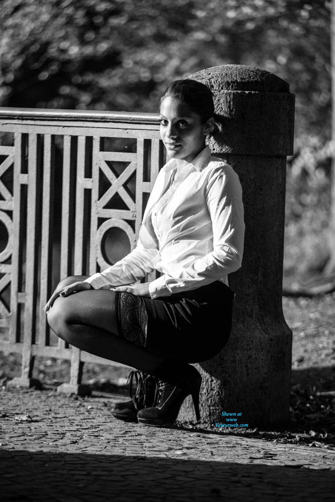We started a shootting in a german park. There were many people and she enjoyed the watchers.